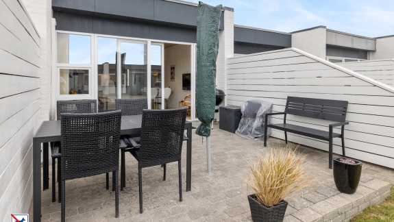 Boligen består af et soveværelse med to enkeltsenge, som kan sættes sammen til dobbeltseng, badeværelse, fuldt udstyret køkken og dejlig stue med spiseplads og sovesofa, som kan benyttes til to yderligere sovepladser. Desuden har lejligheden en skøn afskærmet solterrasse med bord og stole.